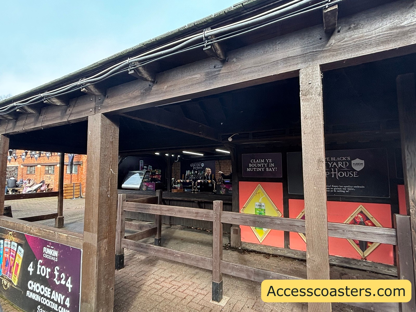 Mutiny Bay is a pirate themed area making the hub of pirate takeover! Featuring pirate themed rides and attractions Heave Ho, Marauders Mayhem, Sharkbait Reef by SEA LIFE and Battle Galleons with a twist. For this event the courtyard has been transformed into the courtyard theatre where live pirate themed shows take place throughout the day. As well as the shows lots of wooden huts have appeared in Mutiny Bay filled with challenges for the Pieces of Eight Treasure Hunt. The area has a number of food options available such as Eastern Express and Burger Kitchen and of course lots of games stalls and an arcade.