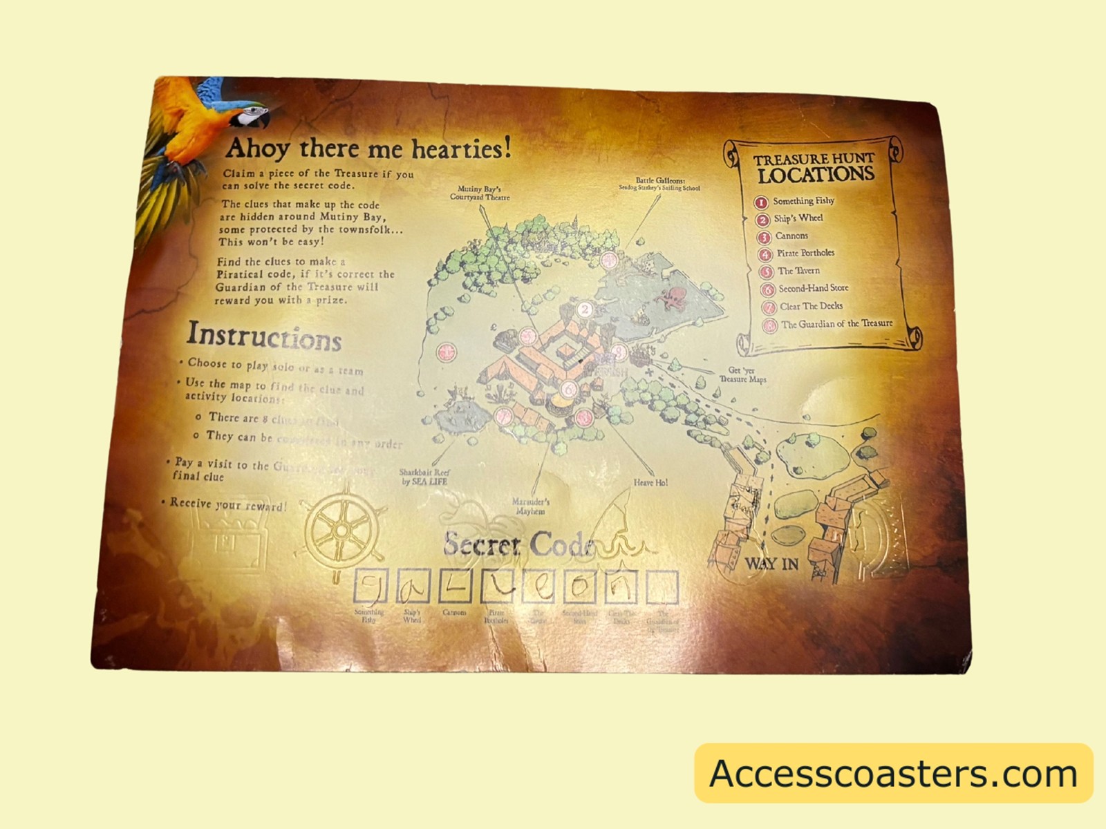- Pieces of Eight Treasure Hunt across Mutiny Bay : All across Mutiny Bay a fun and interactive game has appeared complete all the challenges to find the missing word on the map and claim your prize. Full access information can be found in the ‘Entertainment’ section of this blog post.