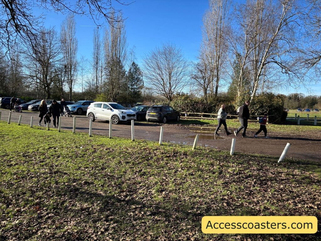 Drayton Manor has lots of blue badge parking. Hardstanding blue badge parking spaces are located past the main car park and over the bridge. Sadly during our visit this car park was flooded so we had to park in the Vikings car car park that is not hardstanding and was very muddy. A few rows of blue badge spots were available and it was a short walk to the Vikings entrance. Car parking costs £9 online or £12 on the day and is free with a gold or ultimate Annual pass or if your staying in the hotel. There is no discount available for blue badge holders. Parking can be pre booked online by adding it on when buying tickets or clicking here pre book car parking. Which is helpful as it means the barrier automatically opens for you.