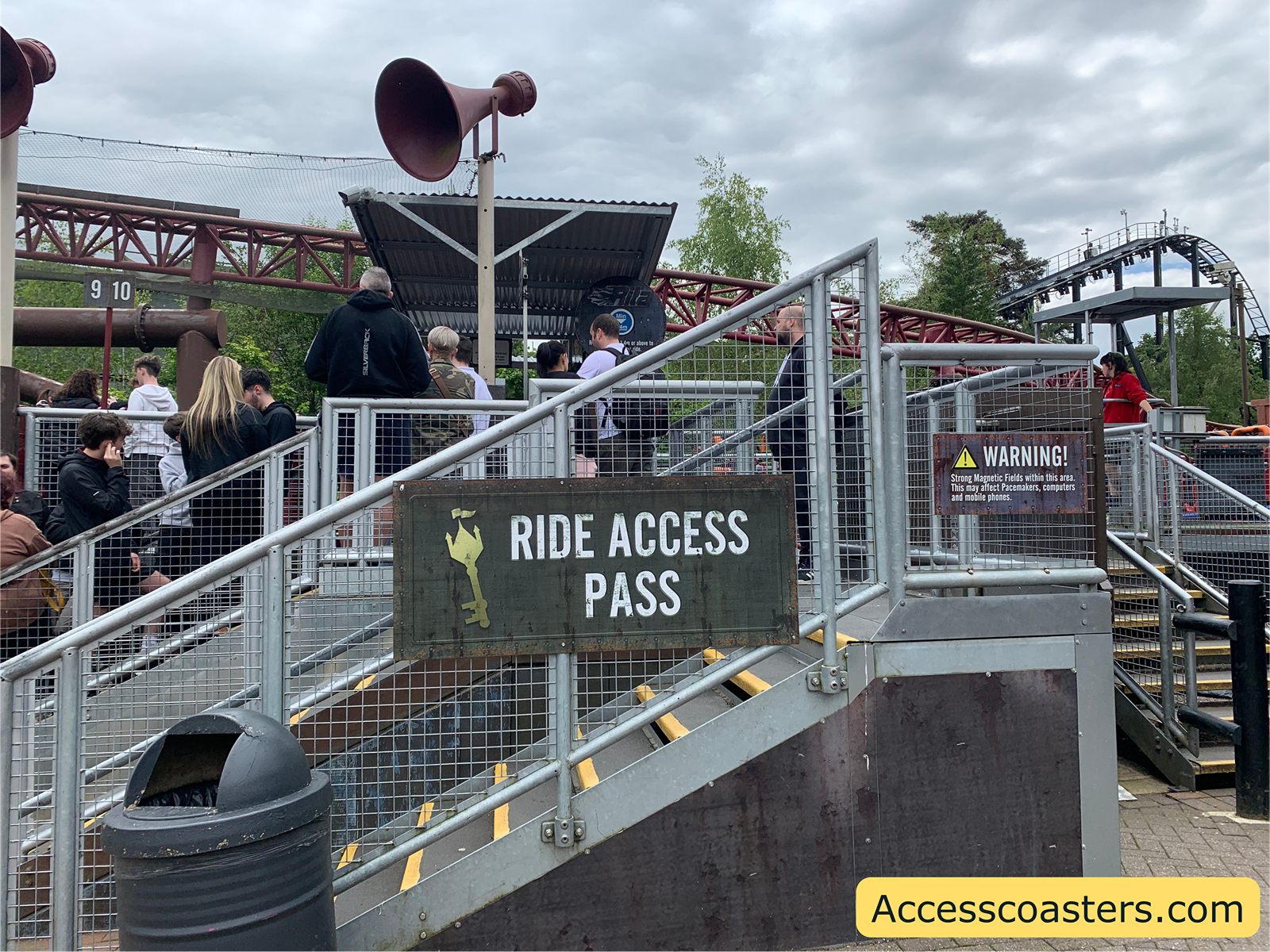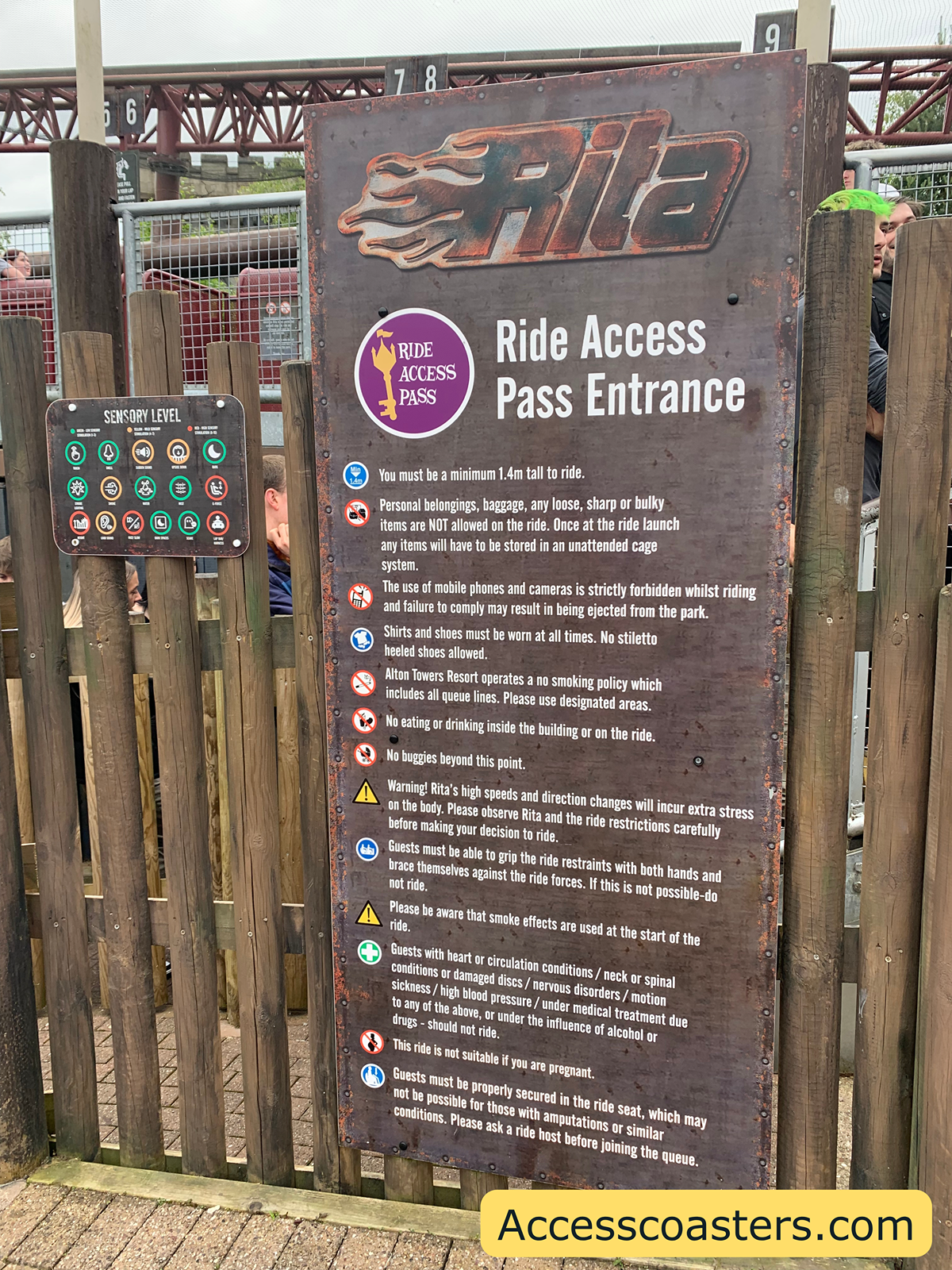 Now you have found out the ride is accessible for you it’s time to locate the ride access pass entrance for the ride you would like to enjoy. The ride access pass entrance can be found by the sign saying ride access pass. The entrance for ride access pass users is normally located not to far away from the mail queue. For some rides and attractions the ride access pass queue line isn’t wheelchair friendly. The vast majority of rides at Alton Towers have a step free option available for guests that require level access, as you can see for Rita there is a lift.