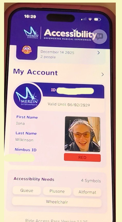 Already have an access card: If you already have an access card with the standing and queuing symbol on the all you have to do is download the ride access pass app and register. Full information can be found in the ‘Setting up ride access pass app’ section of this blog post.