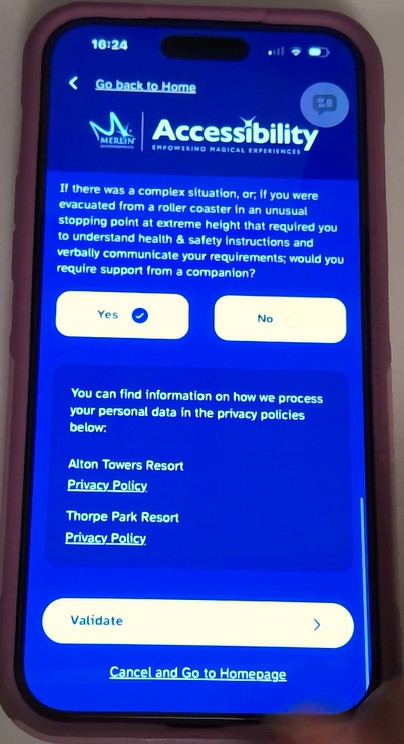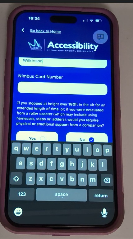 If you do not wish to purchase the access card and would only like your needs to be registered for the Merlin ride access pass system then you can do so by clicking here to fill in the Merlin ride access pass application form. If you are successful you will receive an email with an ID number on you will need this to set up your account on the ride access pass app.