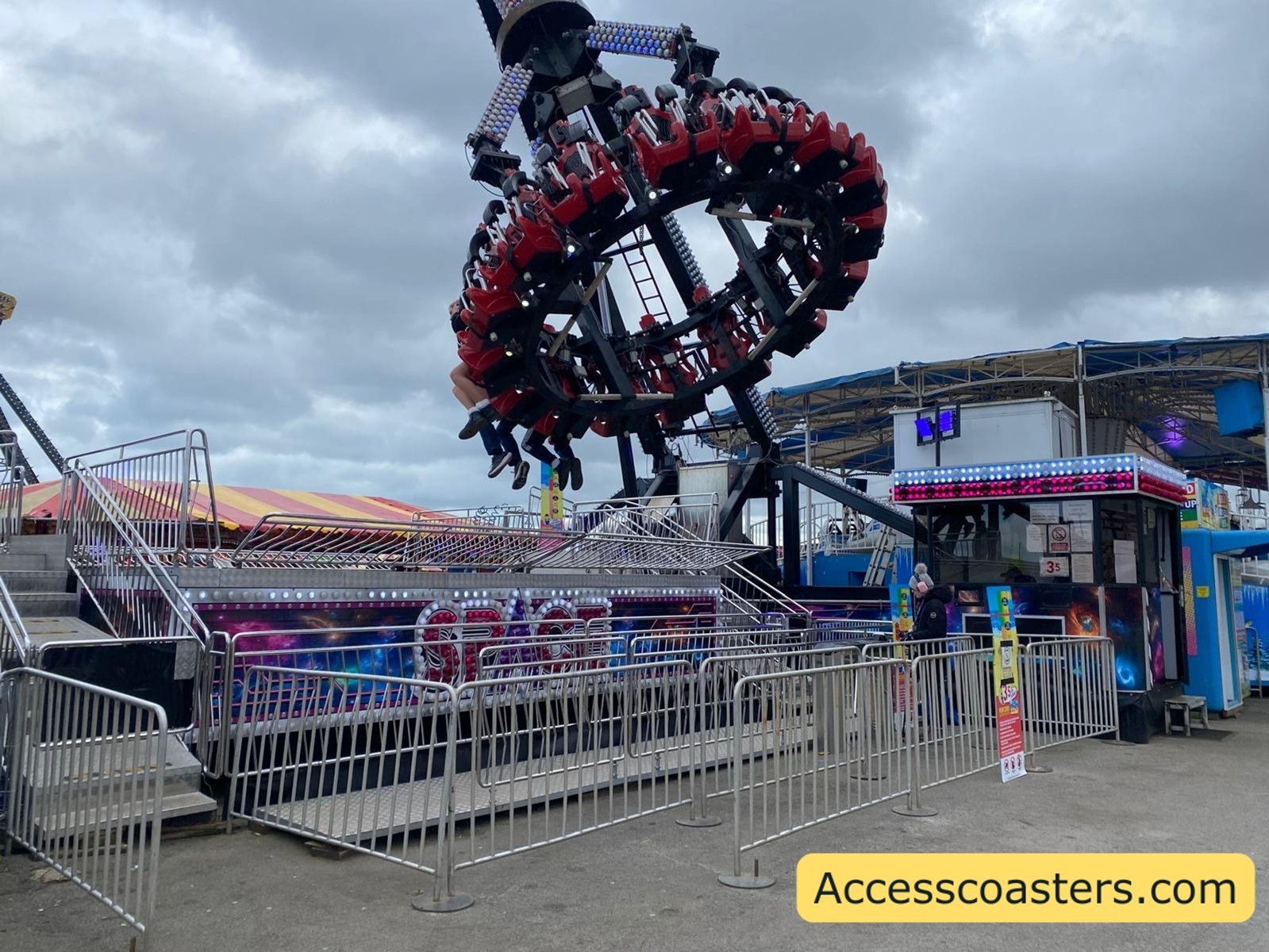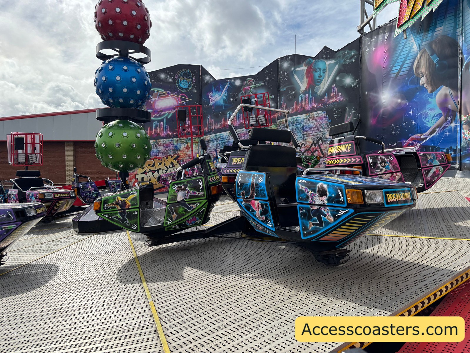 In terms of access, the breakdown had ramped access through the queue line with a step up to the ride platform. Despite the ramped access you wouldn’t be able to get a wheelchair to the ride due to the turnstile at the rides entrance. Breakdance plays very loud music and is a very intense spinning flat ride.